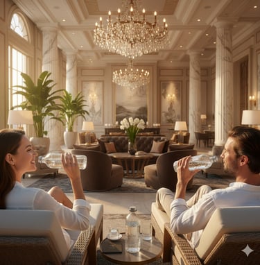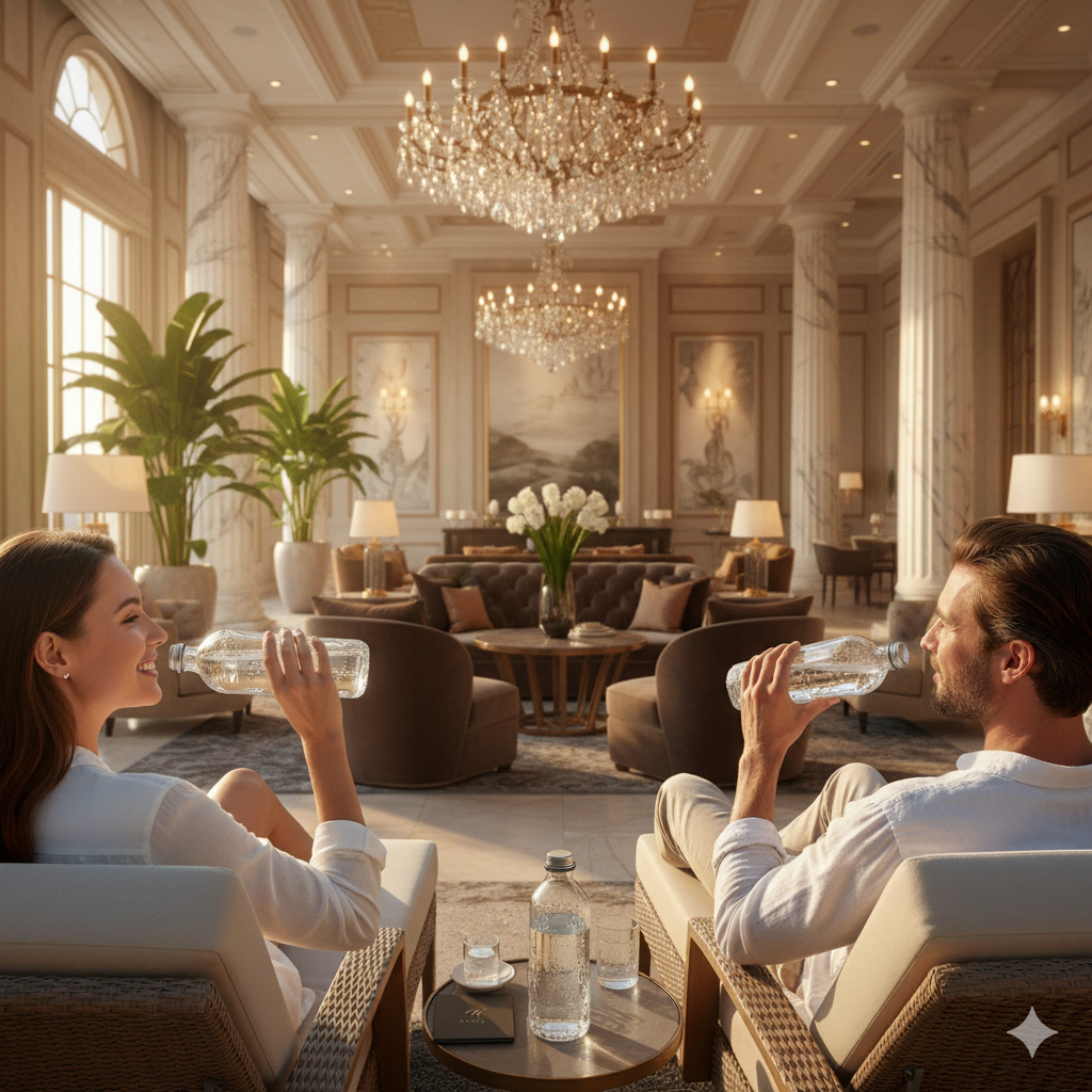 At the end of the process, you receive a neat, clean, hygienically sealed glass bottle filled with pure water — perfectly prepared to serve to family, customers, or VIP guests.