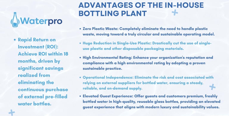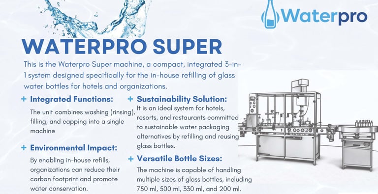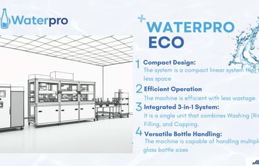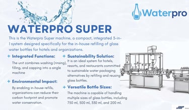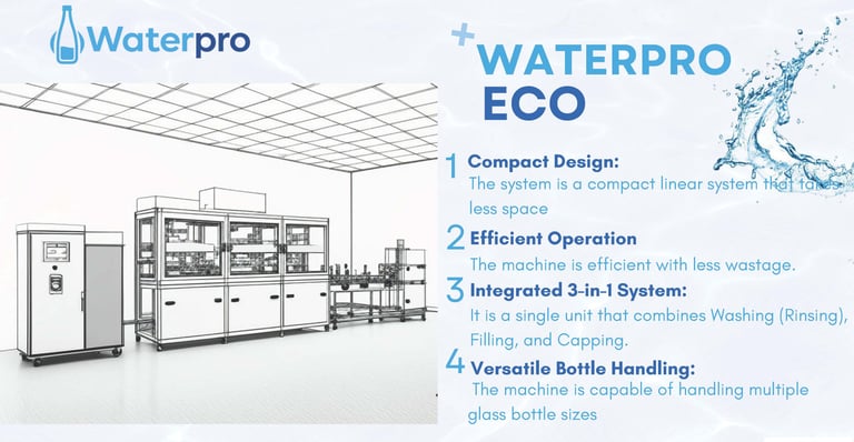 Engineered for homes, offices, hotels, gyms, and premium hospitality services, WaterPro ensures that every glass bottle is perfectly cleaned, filled, sealed, and ready to serve to your most esteemed guests.