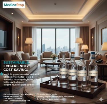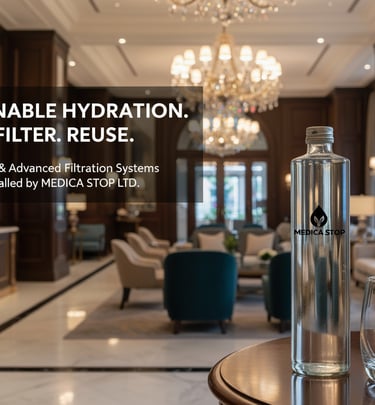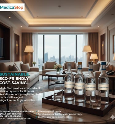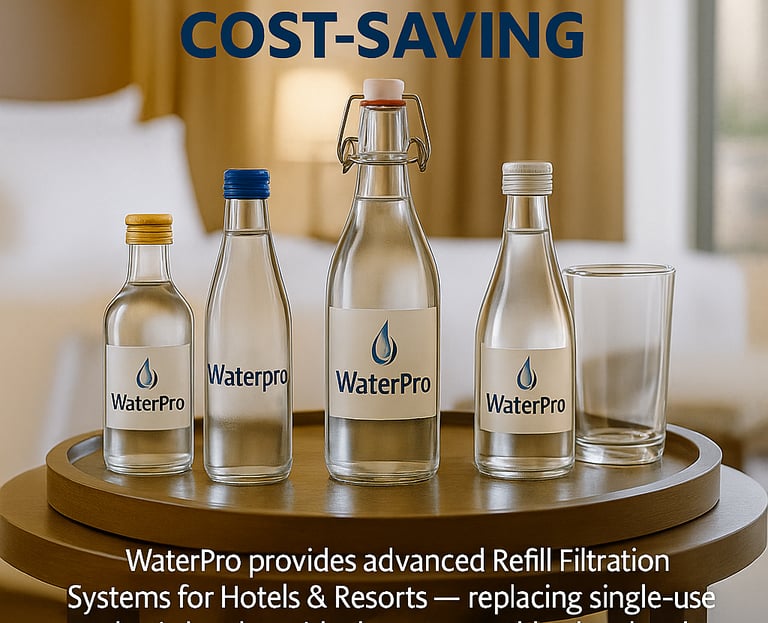 WaterPro works with standard glass bottles commonly used in hotels, restaurants, and organizations.