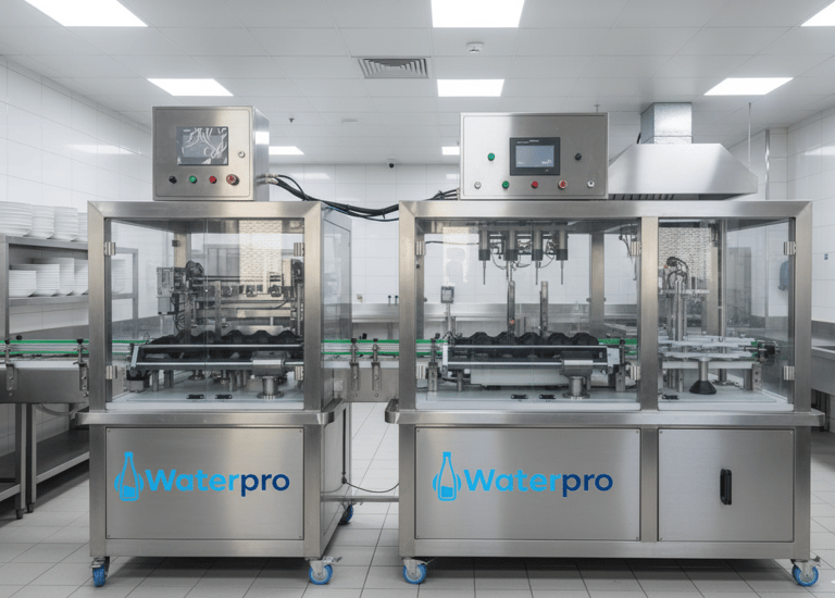 WaterPro cleans, sterilizes, fills, caps, and prints expiry automatically.