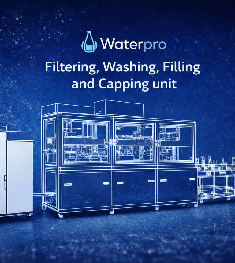Introducing WaterPro, the next generation of water purification and bottling technology — designed to deliver the purest, safest, and highest-quality drinking water with zero manual intervention.